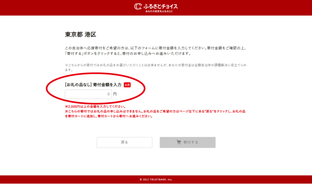 「お礼品不要の寄付をする」を選択ください。